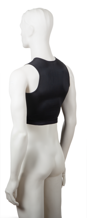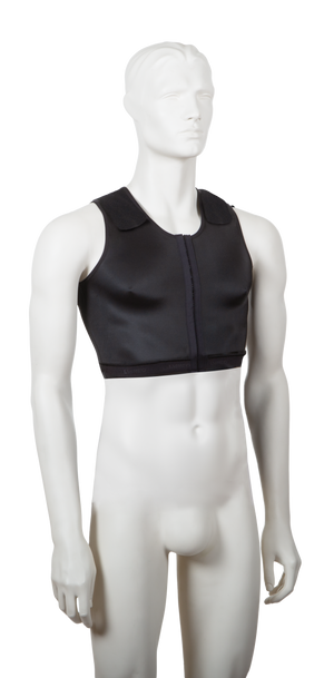 Ylävartalon leikkauksien ja gynekomastian jälkihoitoon. Hihaton. Hakaskiinnitys edessä. Olalla tarrakiinnitteiset, säädettävät olkaimet.